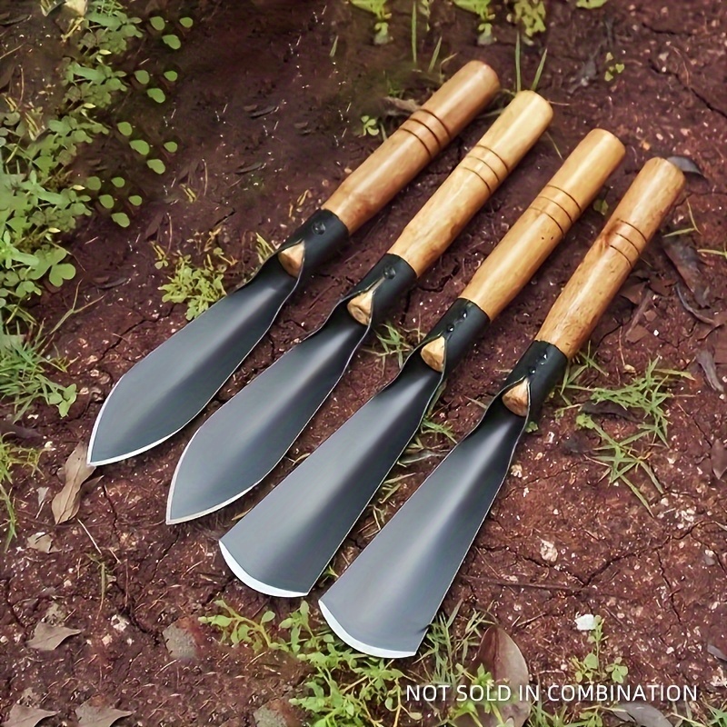 عبوة من مجارف بستنة شديدة التحمل - مجارف يدوية للحدائق من الفولاذ المنغنيز بطول 32 سم مع مقبض خشبي مريح - أدوات حفر معدنية متينة للزهور والخضروات بدون كهرباء