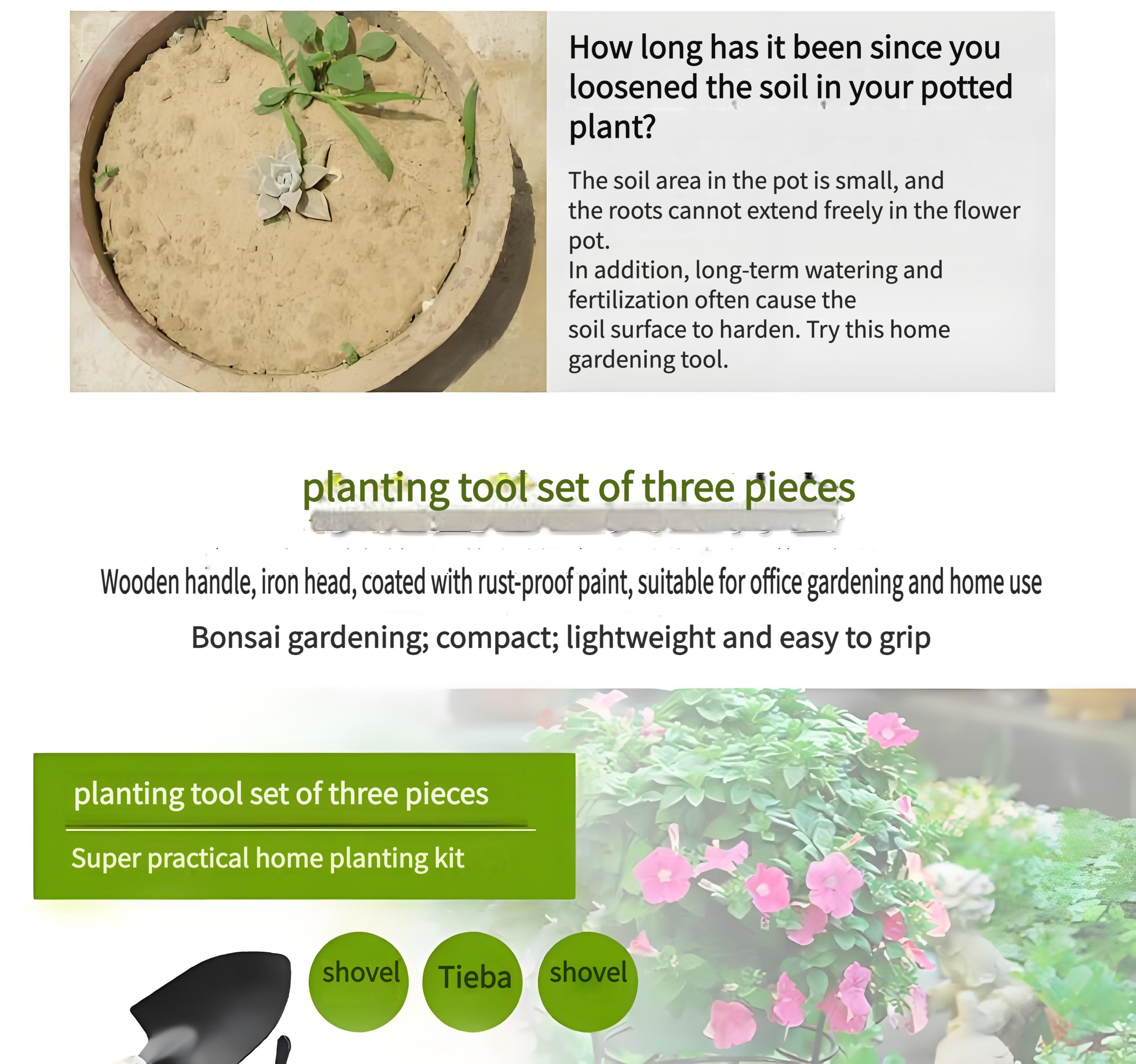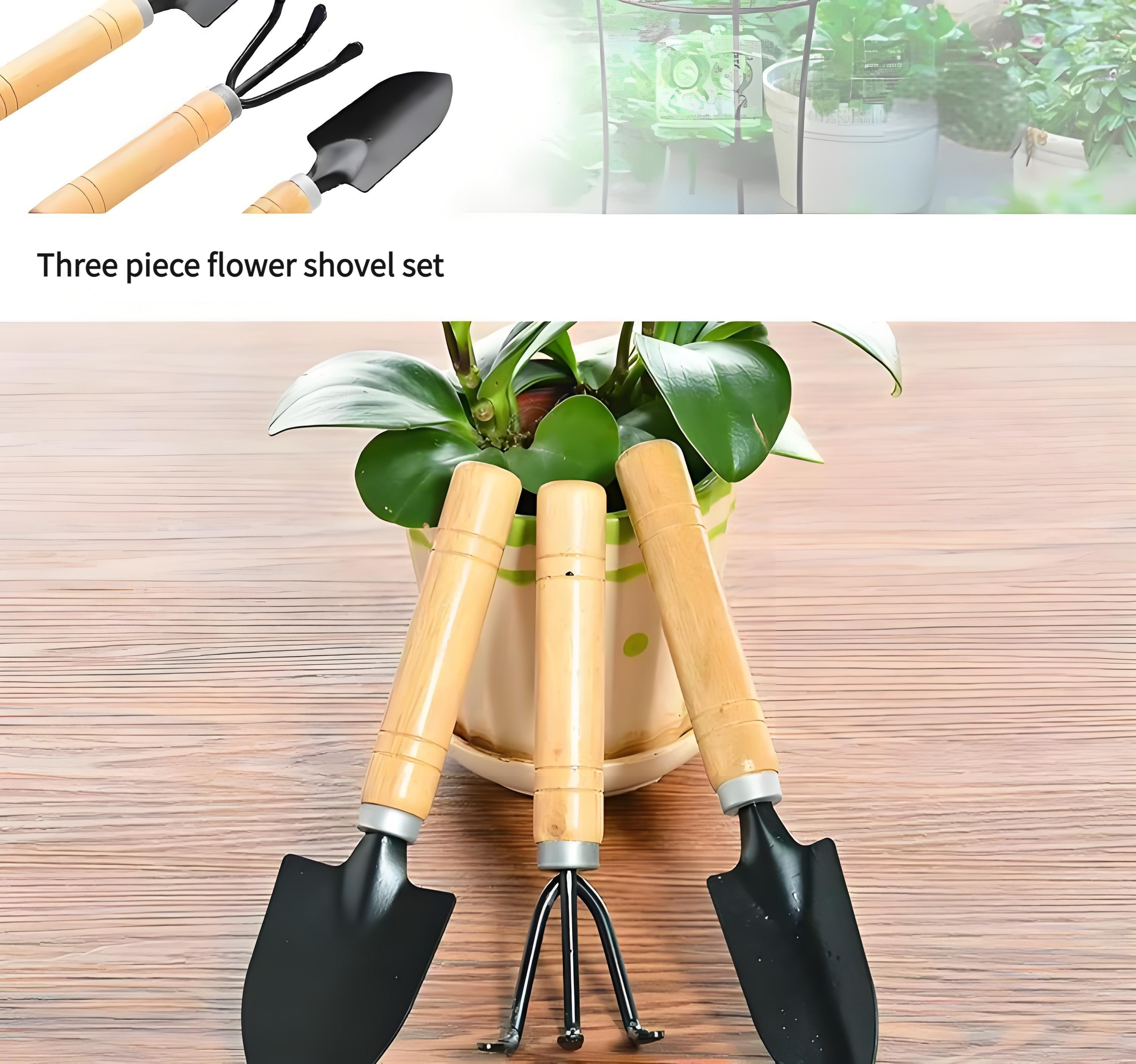 مجموعة أدوات البستنة المكونة من 4 قطع: مقص تقليم، مجرفة، أشعل النار، ومجرفة للزراعة، وإزالة الأعشاب الضارة - مقبض خشبي مريح، مثالي للفناء الخلفي والشرفة