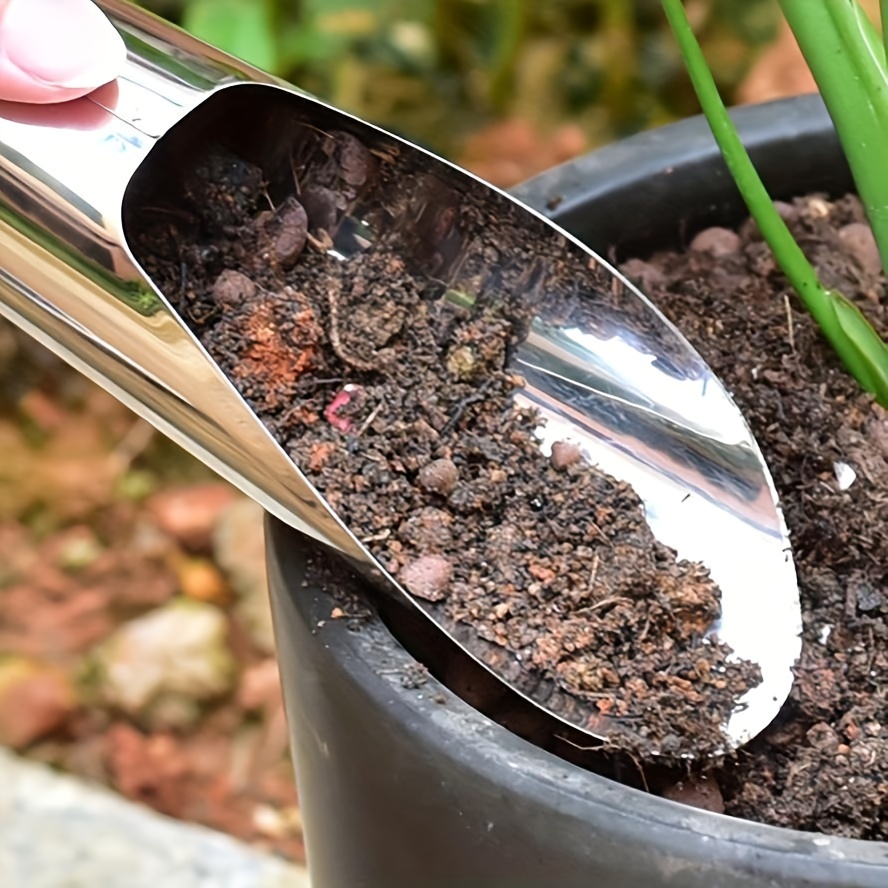مجرفة دلو متينة من الفولاذ المقاوم للصدأ - مثالية للنباتات العصارية والشتلات والنباتات المزروعة في أوعية | أدوات أساسية للحدائق المنزلية مع مجرفة ناعمة وعاكسة