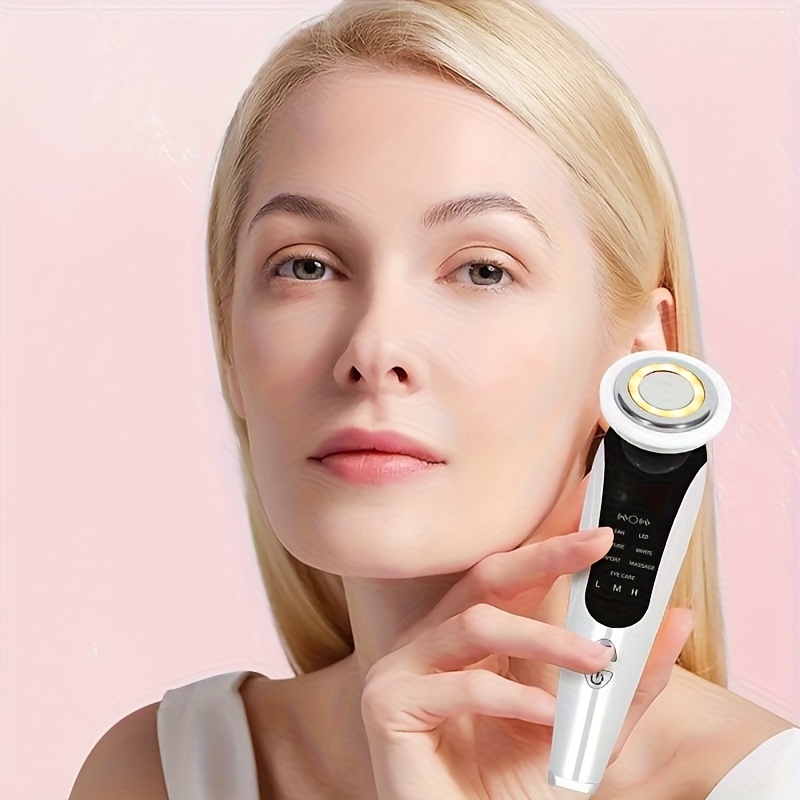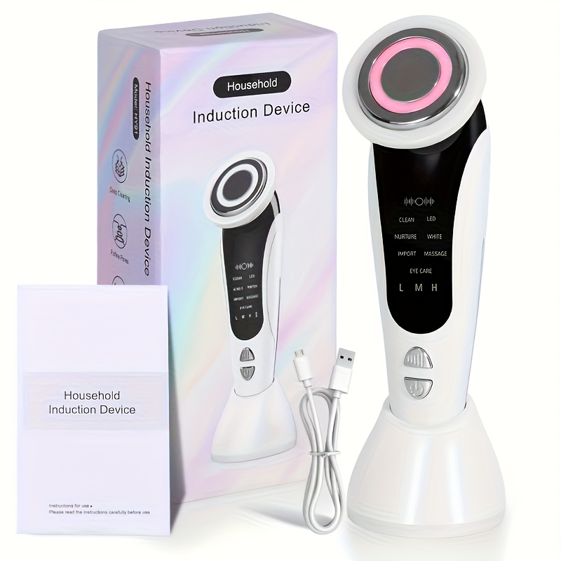 7-in-1 Facial & Neck Beauty Device - Vibrating, Portable USB Rechargeable with 4 Modes and 3 Intensity Levels, White Elegant Design - Ideal Gift for Home and Friends, Massage Equipment | Compact Size, Perfect for Family Use