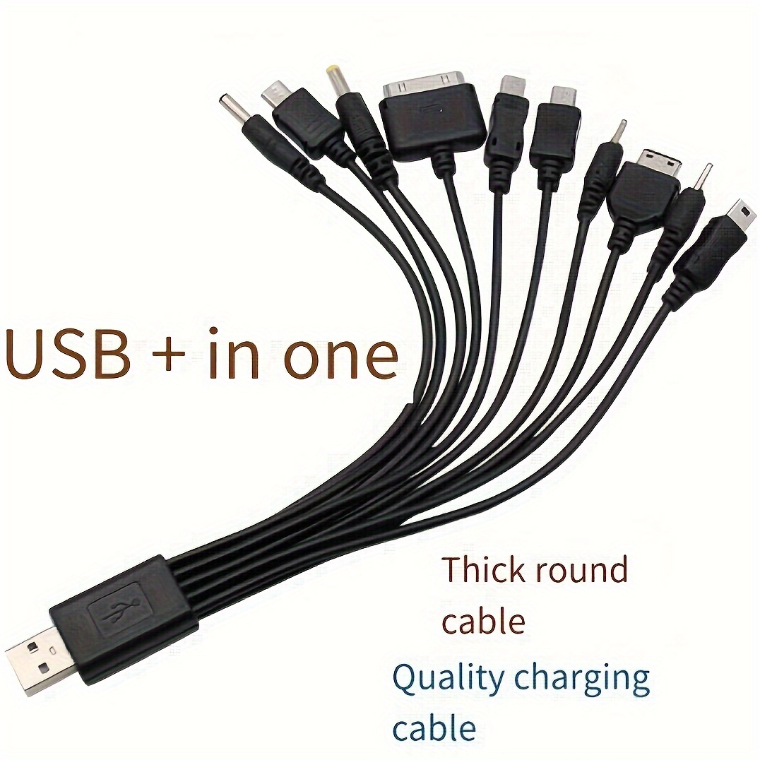 Câble de Données Multifonction 10-en-1 : Un câble unique pour charger et synchroniser jusqu’à dix appareils mobiles simultanément.