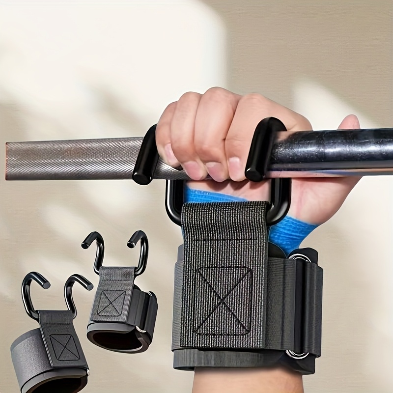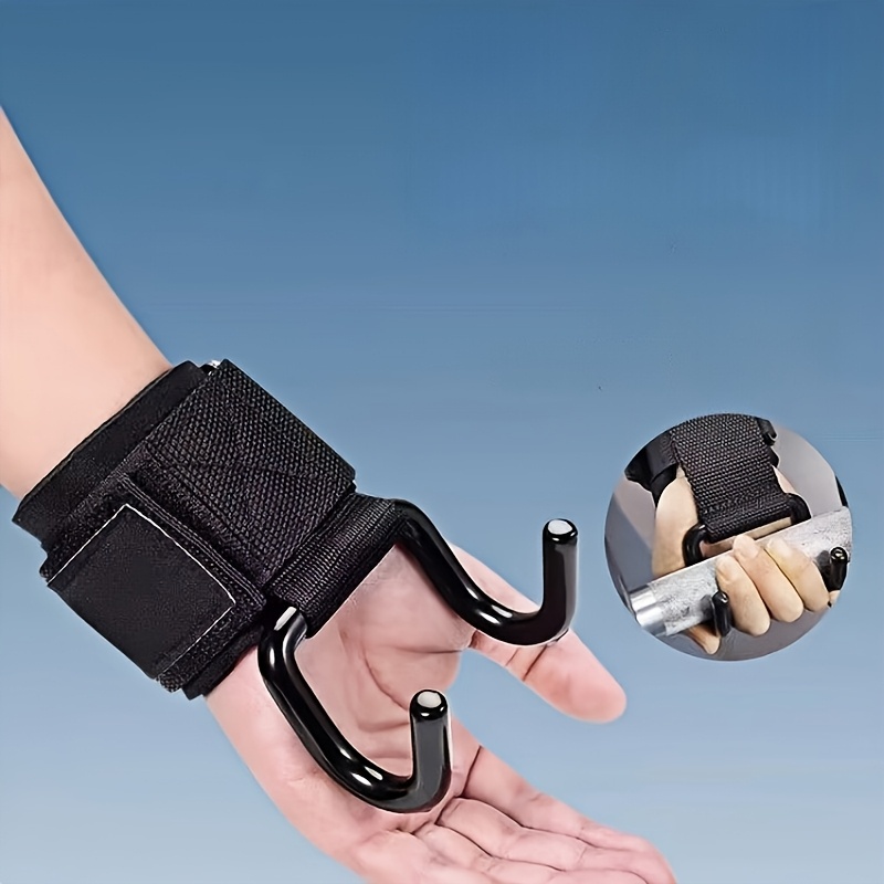 Lot de 2 crochets de levage avec bandes de soutien pour poignets, réglables, idéals pour deadlifts, tractions et haltères, assistance pour tous niveaux.