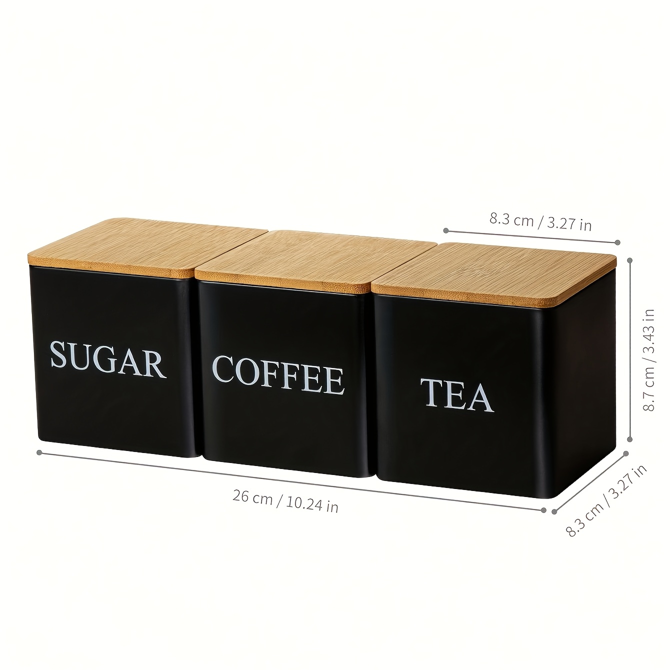 Lot de 3 boîtes de rangement métalliques noir et blanc, pour café, thé et sucre, pratique et décoratif, idéal cuisine quotidienne.