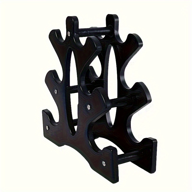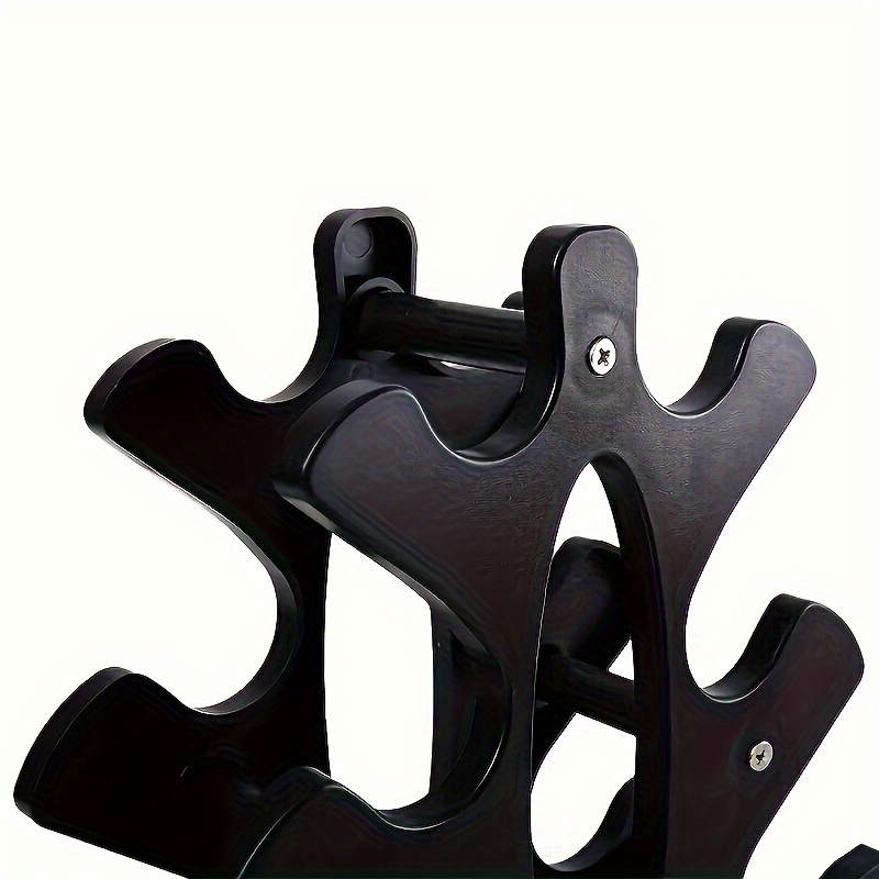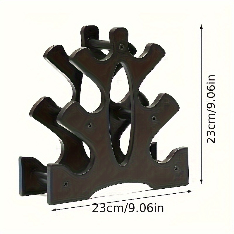 Râtelier triple pour haltères en ABS robuste, compact et stable, capacité 6 haltères par côté, parfait pour gym à domicile ou professionnel.