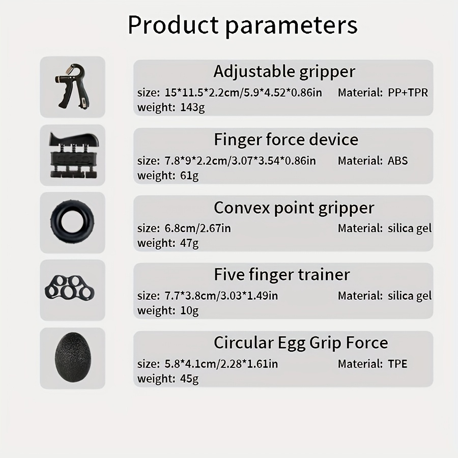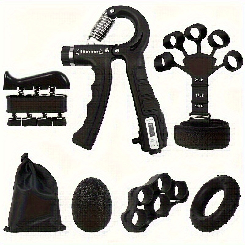 Set de 7 entraîneurs de force, pour entraînement des muscles des doigts et des bras, améliore préhension et endurance.