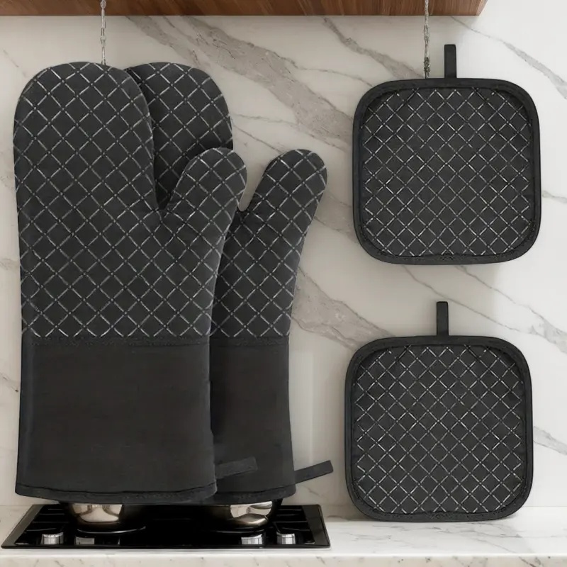 Ensemble gant et tapis de cuisine : polyester durable, facile à nettoyer, résistant à la chaleur. Accessoire essentiel pour une utilisation domestique quotidienne.