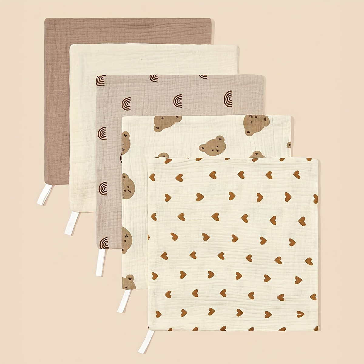 5 serviettes pour bébés, motifs adorables, douces, idéales pour le bain, la poussée dentaire et les moments de jeu.
