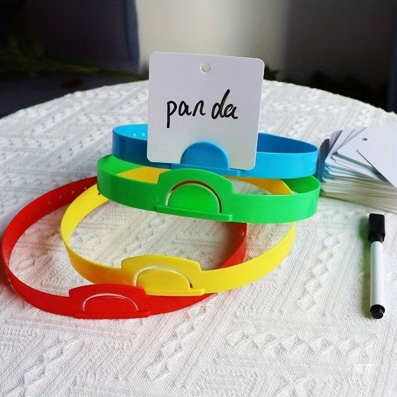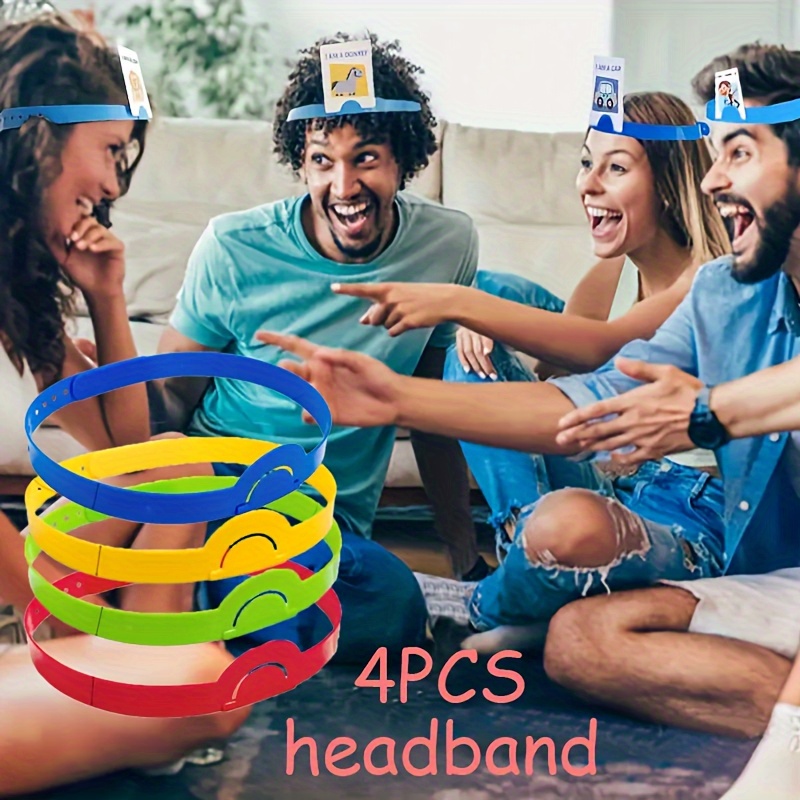 8 serre-têtes réglables « Devine qui je suis », avec emplacement pour cartes, idéals pour jeux, fêtes et célébrations familiales.