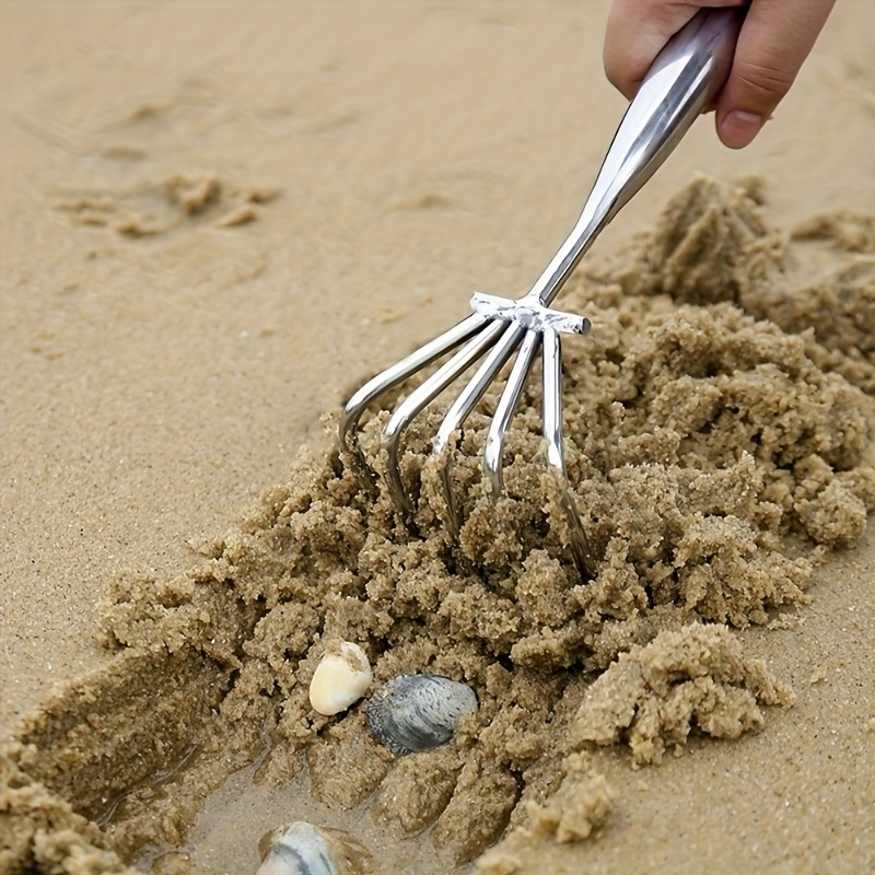 1-Pack Heavy-Duty Stainless Steel Garden Rake with 5-Tine Claws - Manual Leaf Collector, Soil Leveler & Weed Puller - Rust-Resistant Lawn, Beach, Yard Tool - No Electricity Needed - Ideal for Home, Professional, and Gardening