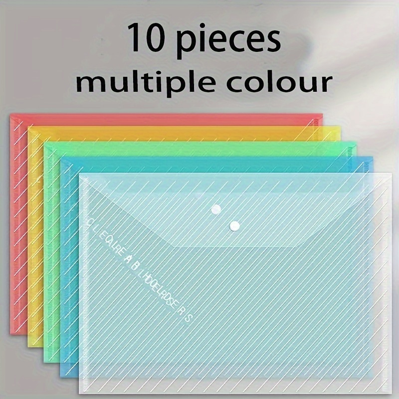 10pcs, Thickened Random Color File Bag A4 Transparent Waterproof Snap Button File Bag Large Capacity Office Data File Bag Student Test Paper Bag, Back-to-School Supplies, Kawaii Stationery, School Colors, Stationery