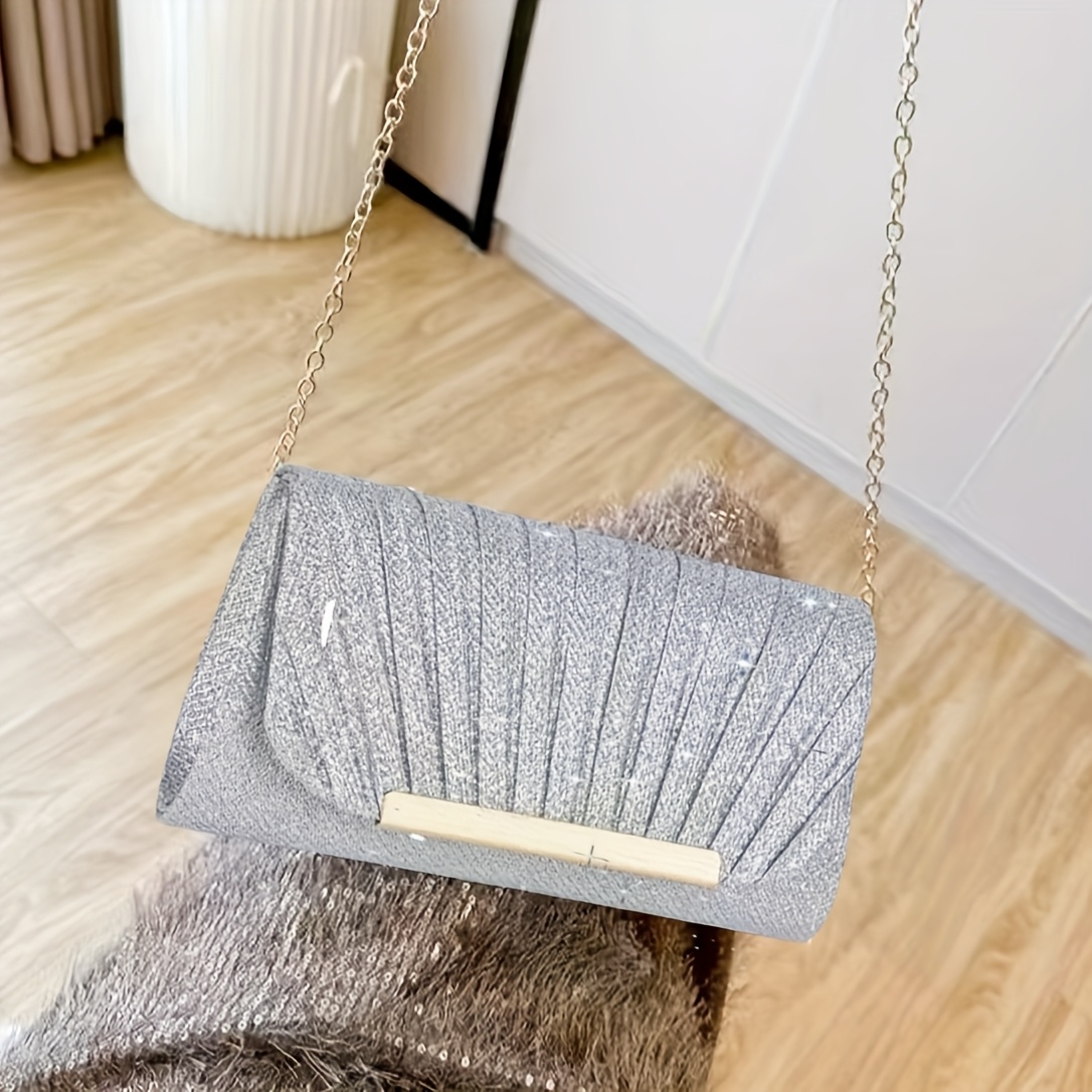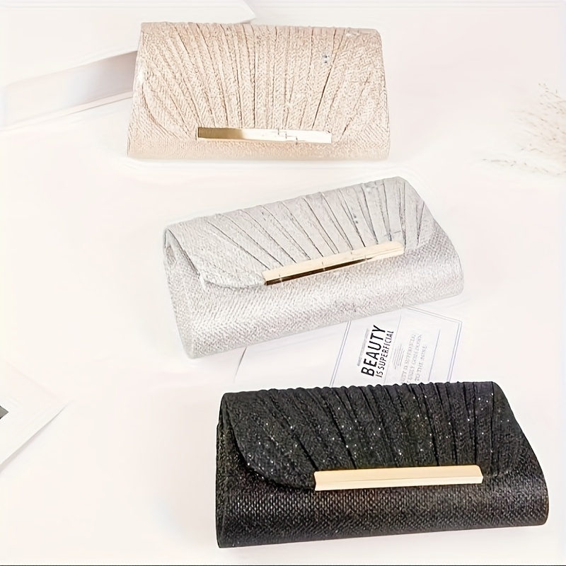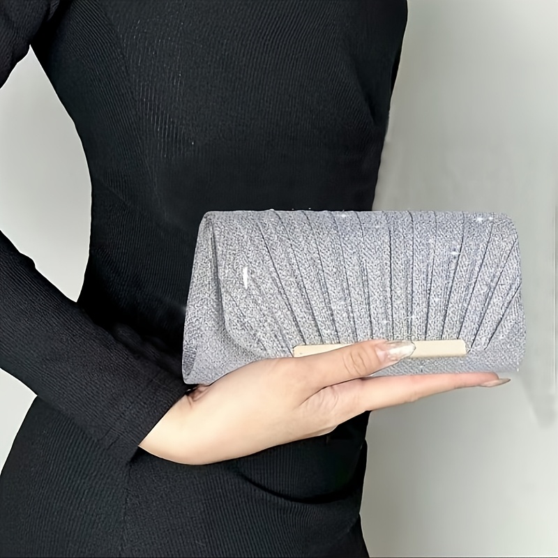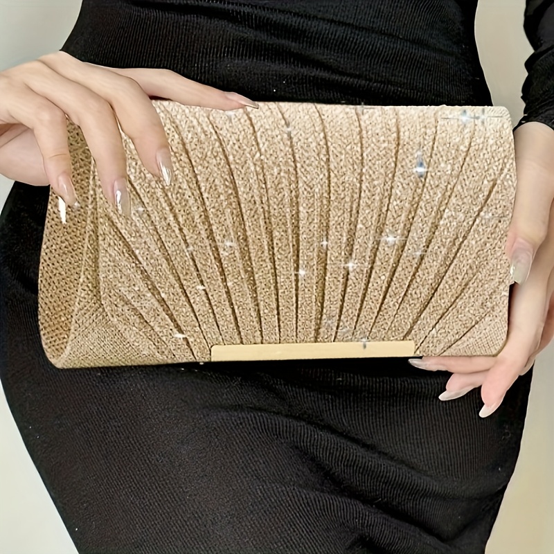 Sac enveloppe de soirée plissé et brillant, élégant, idéal pour mariages, soirées dansantes et banquets formels.