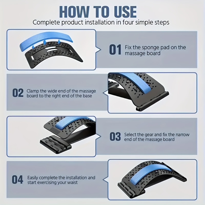3-Level Adjustable Back Stretcher & Posture Corrector | Ergonomic Lumbar Support with Massage Function, Secure Grip Handles, for Upper & Lower Back, Office, Car, Home Use, Durable PP Construction.