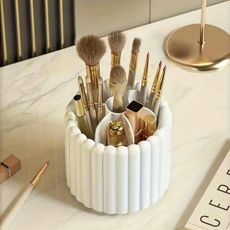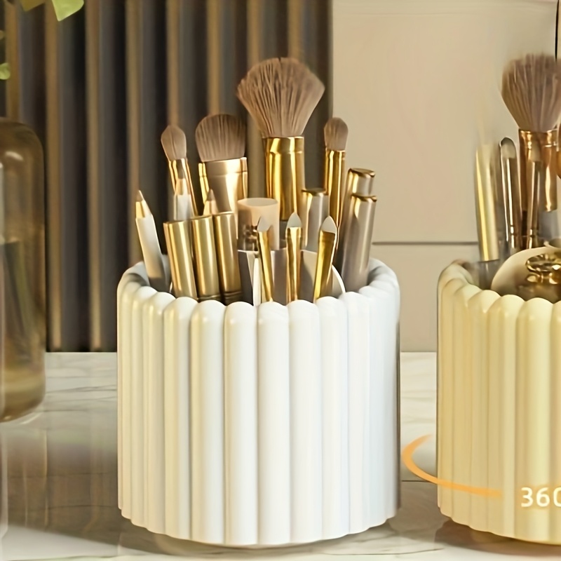 Organiseur de maquillage rotatif 360° Sans montage, rotation fluide, gain de place, compatible pinceaux, rouges à lèvres et outils beauté, idéal maison, salon ou voyage.