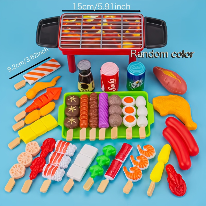 Set de jeux de cuisine, aliments et accessoires de barbecue simulés, idéal pour stimuler imagination et apprentissage des enfants.
