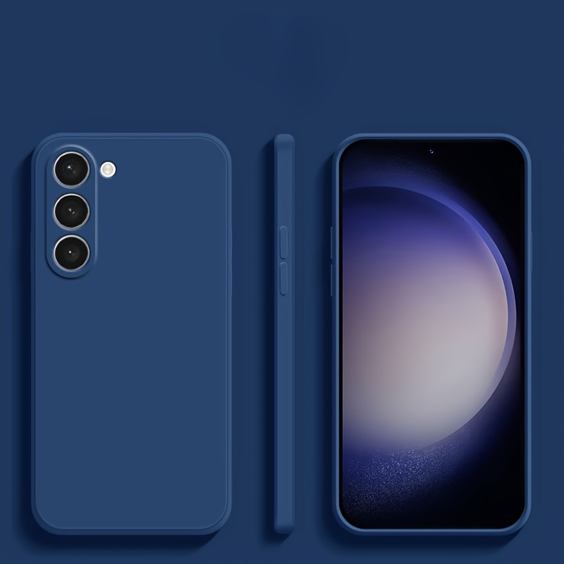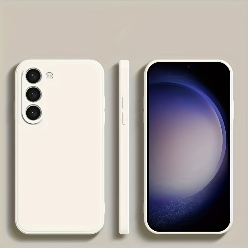 Coque carrée en silicone à bords droits pour Samsung Galaxy, offrant protection antichoc, prise en main sécurisée et design moderne minimaliste.
