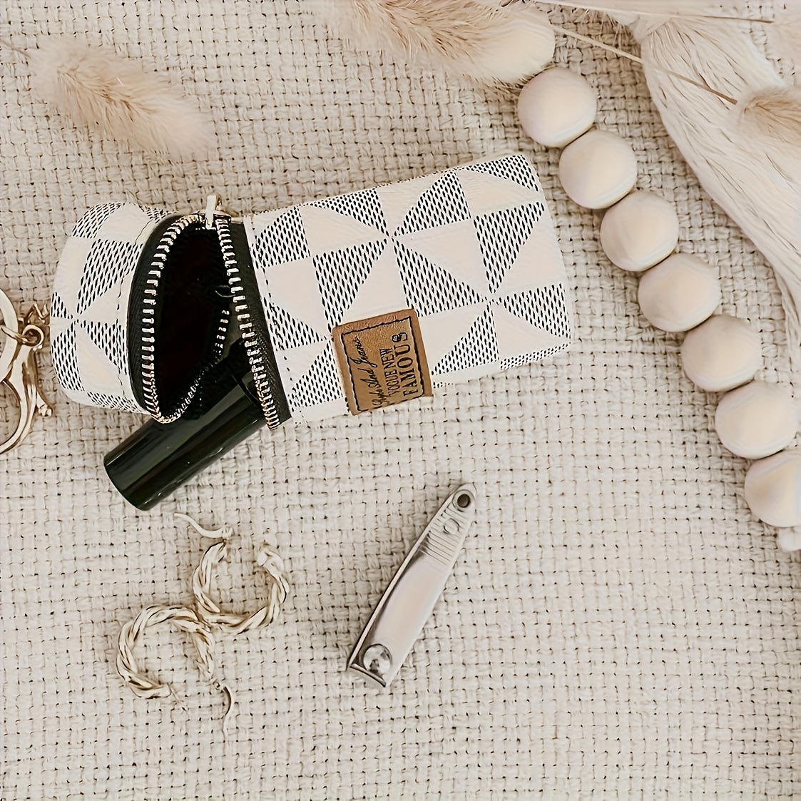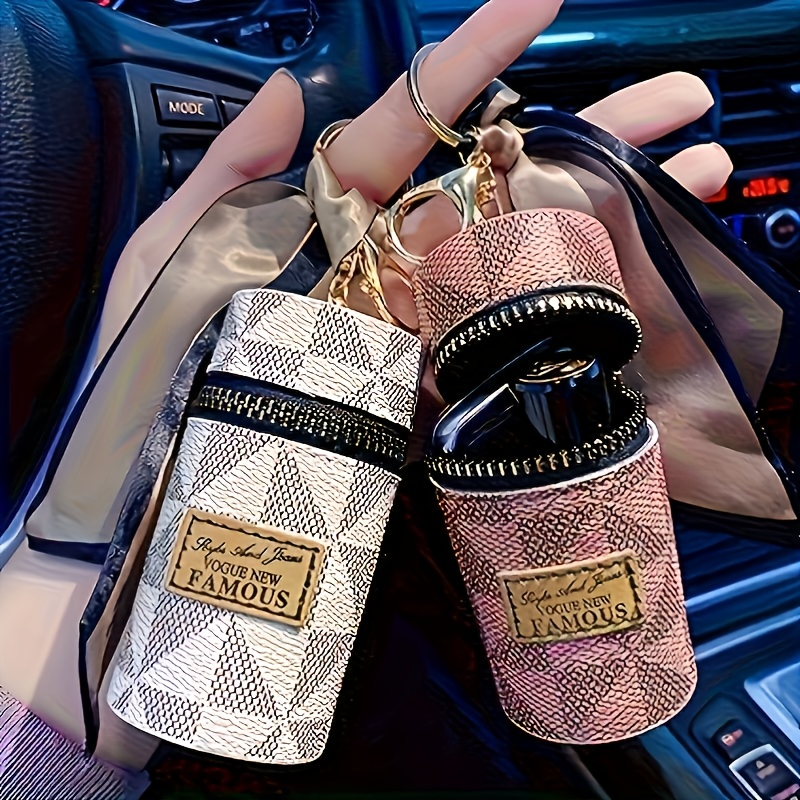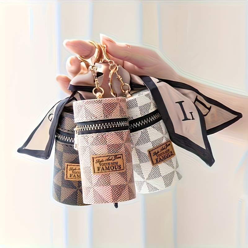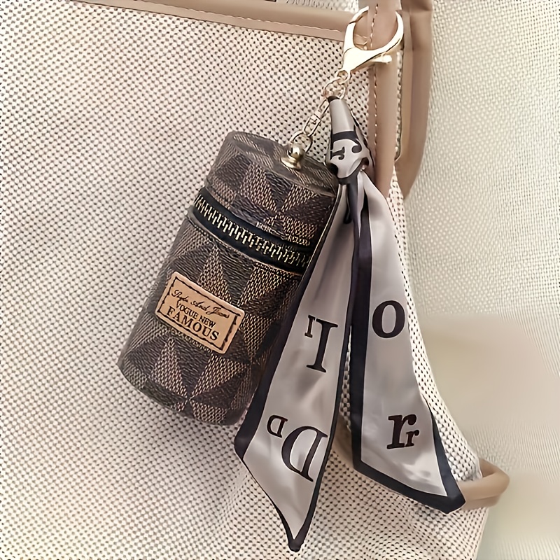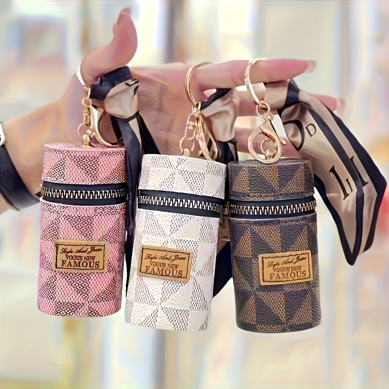 Three Colors Available - Round Coin and Lipstick Holder Wallet, Durable PU Material with Geometric Pattern Design, Black Zipper Closure, Golden Keychain Charm, Large Capacity Women's Travel Commute Mini Purse for Coins & Cash
