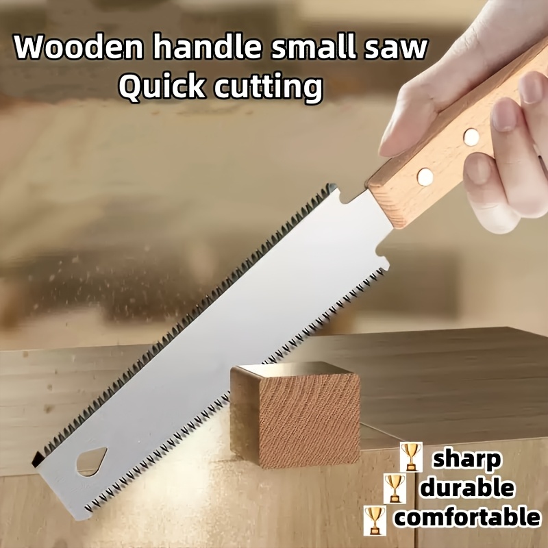 Scie manuelle SK5 à double tranchant, dents fines précises et manche bois, parfaite pour coupes nettes en menuiserie et élagage.
