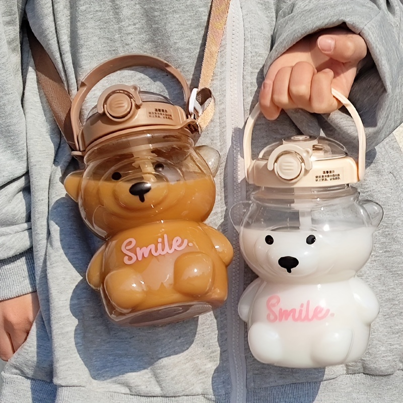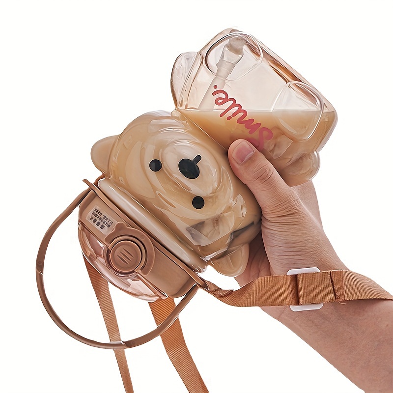 Bouteille d’eau ourson 1000 ml avec paille, étanche, polycarbonate rectangulaire, sans PVC, à laver à la main.