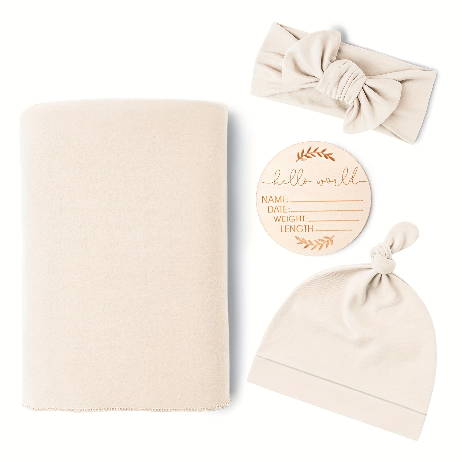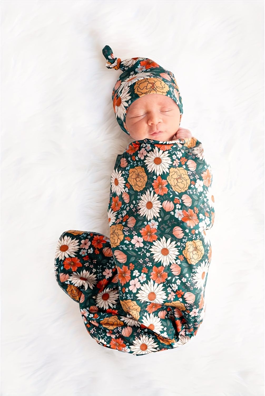 CINCOBEBÉ Newborn Swaddle Blanket & Hat Set - Soft Polyester Baby Wrap with Floral Pattern, Machine Washable, Includes Headband & Monthly Card, Perfect Gift for Boys and Girls, Newborn Essentials|Floral Pattern Blanket|Polye
