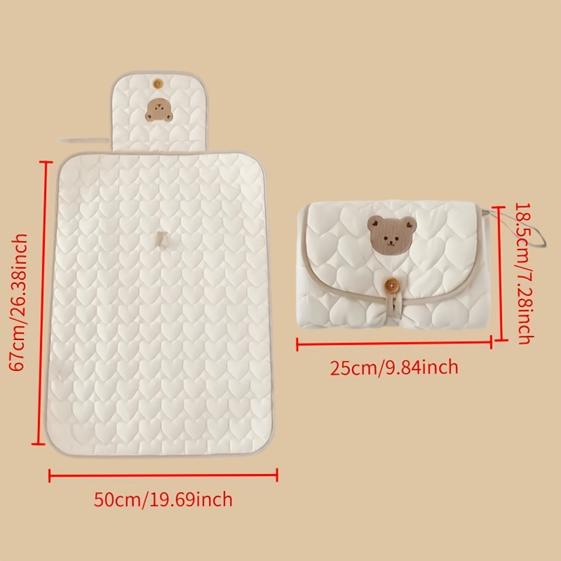 Cream Bear-Patterned Portable Diaper Changing Pad - Foldable, Breathable Polyester with Adjustable Strap for Travel & Short Trips, Short Trip Essentials | Foldable Pad | Secure Closure, Diaper Pouch
