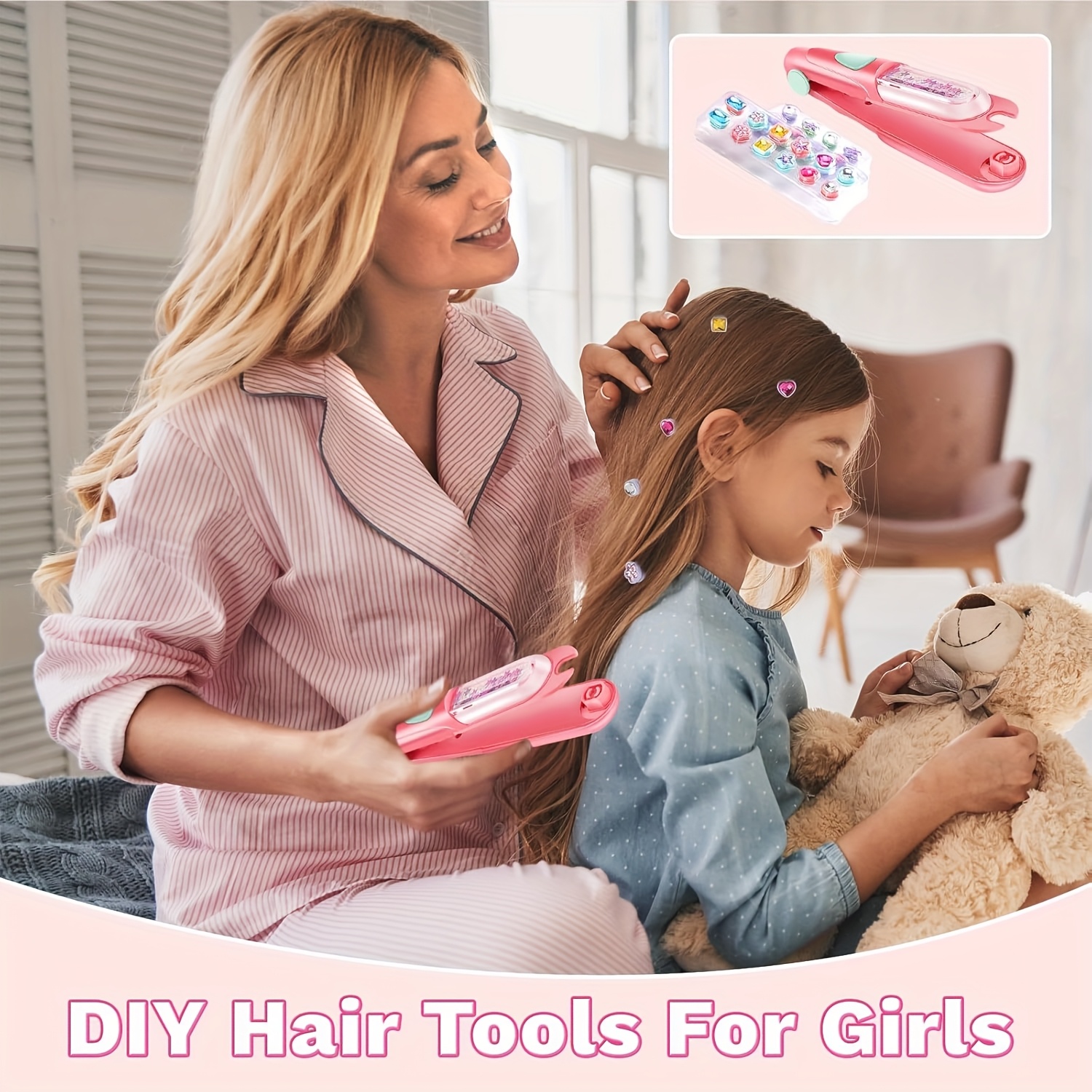 Kit tampon cheveux filles, accessoires réutilisables type diamant, outils roses avec étoiles, cœurs et cercles pour coiffures créatives.