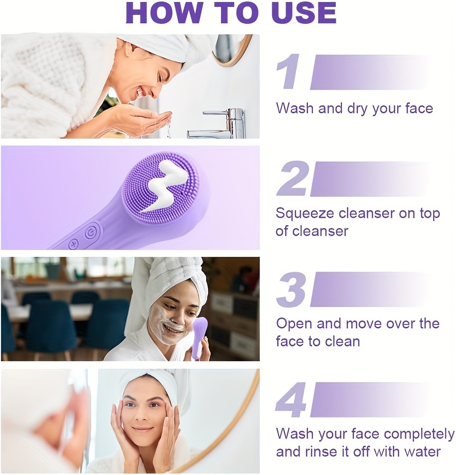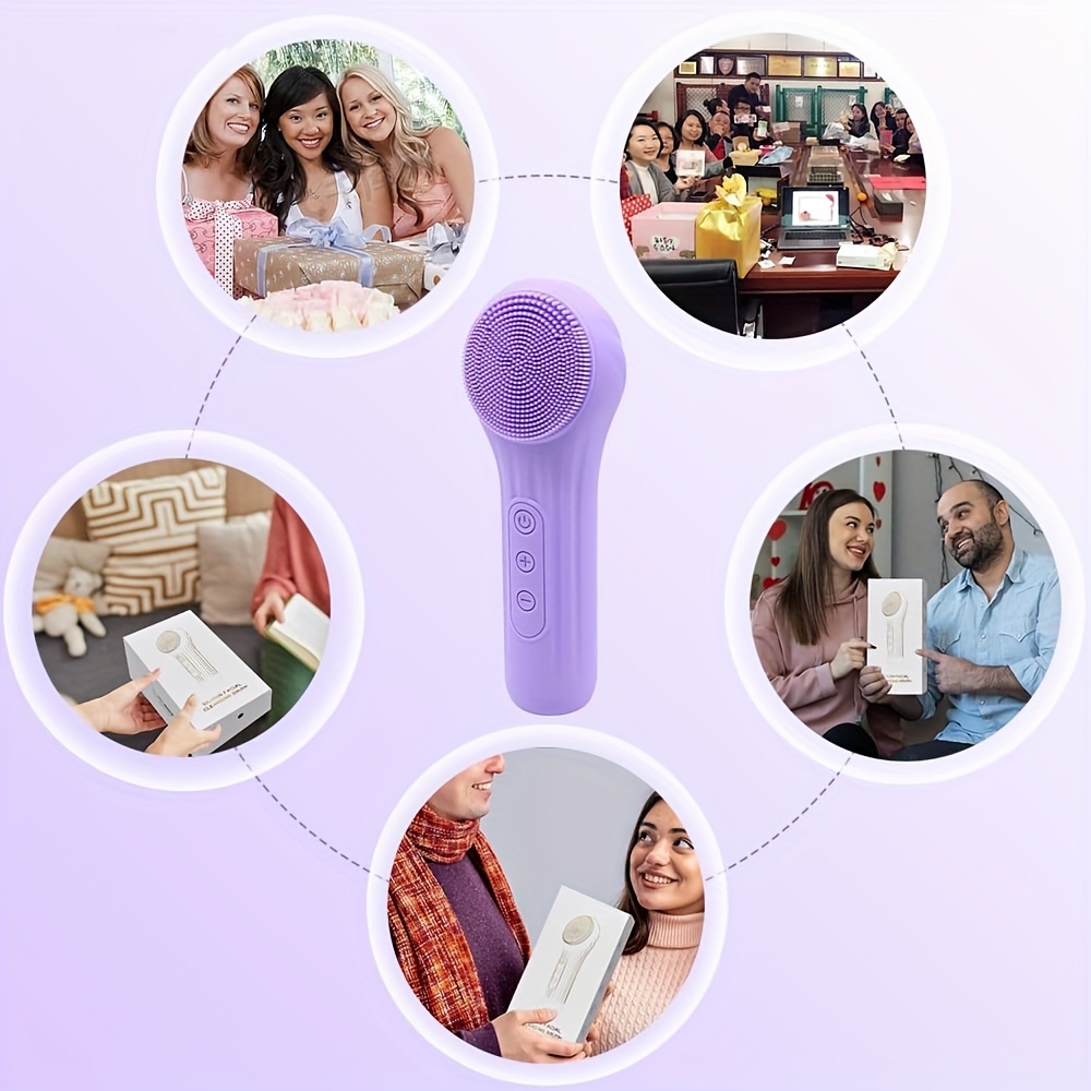 Brosse nettoyante en silicone rechargeable, chauffante, vibrante et massante, nettoie en profondeur et démaquille, parfait cadeau fête des mères.